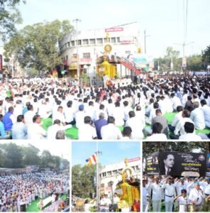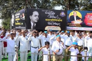 भारतीय बौध्द महासभा जिल्हा शाखेच्यावतीने डॉ. बाबासाहेब आंबेडकर यांच्या पुतळ्याजवळ शनिवारी अभिवादनाचा कार्यक्रम आयोजित करण्यात आला होता. कार्यक्रमाची सुरुवात भगवान गौतम बुद्ध व डॉ. आंबेडकर यांच्या प्रतिमांचे पूजन करून झाली. यावेळी सामुहीक बुध्द वंदना घेण्यात आली. पूजनीय भन्ते, पोलीस अधीक्षक रविंद्रसिंह परदेशी, भारतीय बौद्ध महासभेचे राज्य सचिव बाबासाहेब धबाले, ज्येष्ठ नेते बी. एच. सहजराव, दशरथ गायकवाड, उपाध्यक्ष डी. आय. खेडकर, व्ही. व्ही. वाघमारे, प्रा. डॉ. प्रविण कनकुटे, विश्‍वनाथ झोडपे आदी मान्यवरांनी प्रतिमांना पुष्पहार अर्पण करून आदरांजली वाहिली. सभेचे अध्यक्ष डी. आय. खेडकर यांच्या हस्ते पंचरंगी धम्मध्वज अर्ध्यावर फडकावण्यात आला. समता सैनिक दलाच्या डी. के. टोंपे, नागनाथ सोनुले आणि राहुल कोसे यांनी मानवंदना दिली. त्यानंतर भंते पी. धम्मानंद व भंते धम्मपाल यांनी उपस्थितांना त्रिशरण पंचशीलाचे ग्रहण करून दिले. बौद्धाचार्यांनी गाथा सादर करताच परिसर शांतता, करुणा आणि समतेच्या संदेशाने भारावून गेला.
